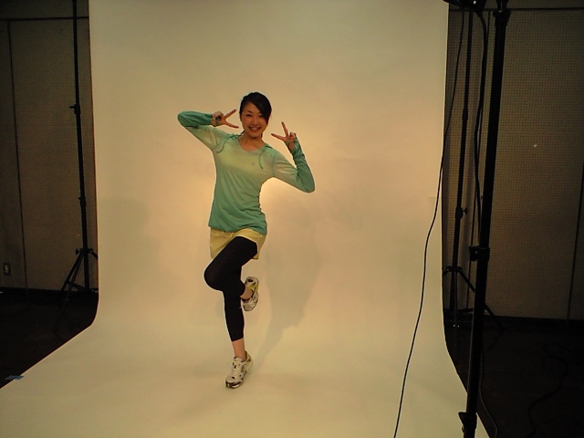 私、逆立ちでスタジオ半分まで歩くと